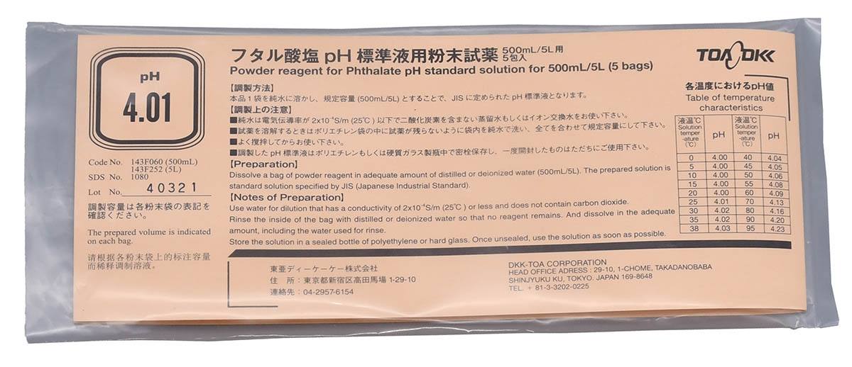 | 3-138-0005 | pH標準液用粉末(東亜DKK) pH4.01(500mL用 5袋) |