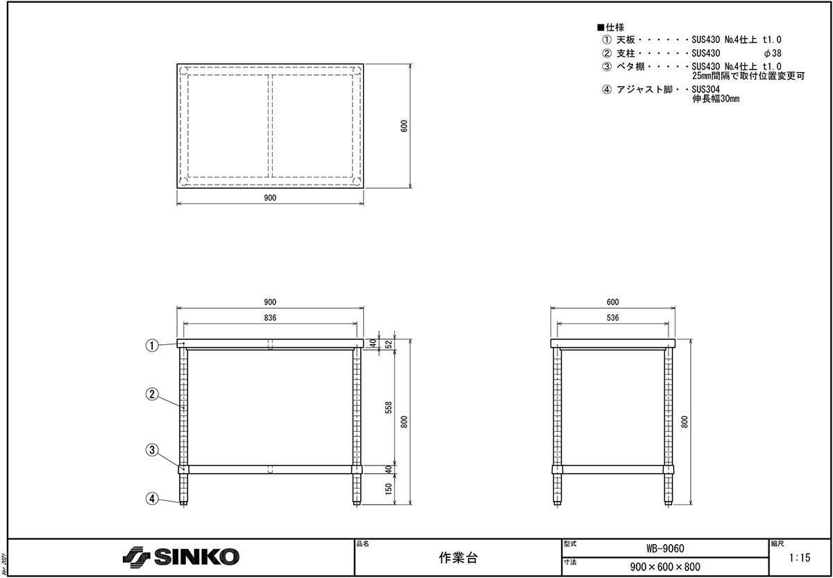 ステンレス作業台(ベタ棚) WB-9060