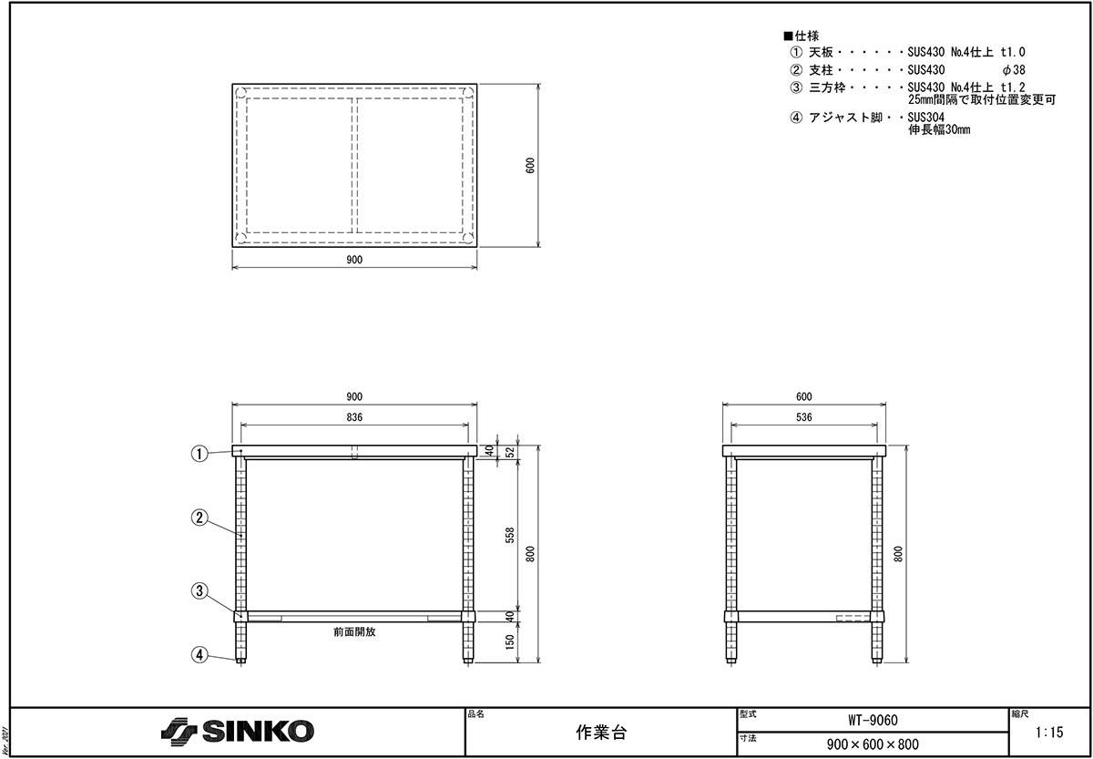 ステンレス作業台(三方枠) WT-9060
