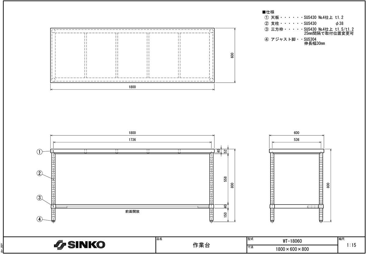| 3-139-0306 | ステンレス作業台(三方枠) WT-18060 |