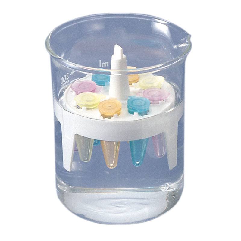 ●マイクロチューブをウォーターバスやビーカーに浮かせて、水浴や氷浴での昇温・降温に便利です。