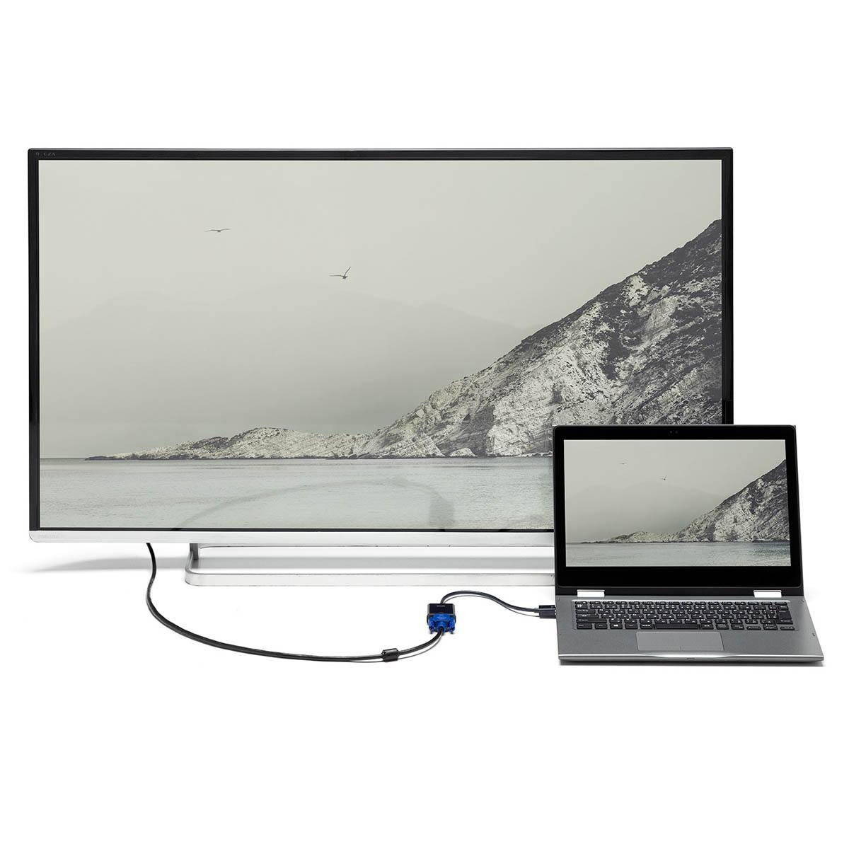 ●HDMI出力を持つ機器の映像信号をVGAコネクタ(ミニD-Sub(HD)15pin)に変換するケーブル一体型の変換アダプタです。※ディスプレイ側のHDMIコネクタをVGAコネクタ(ミニD-sub(HD)15pin)に変換することはできません。